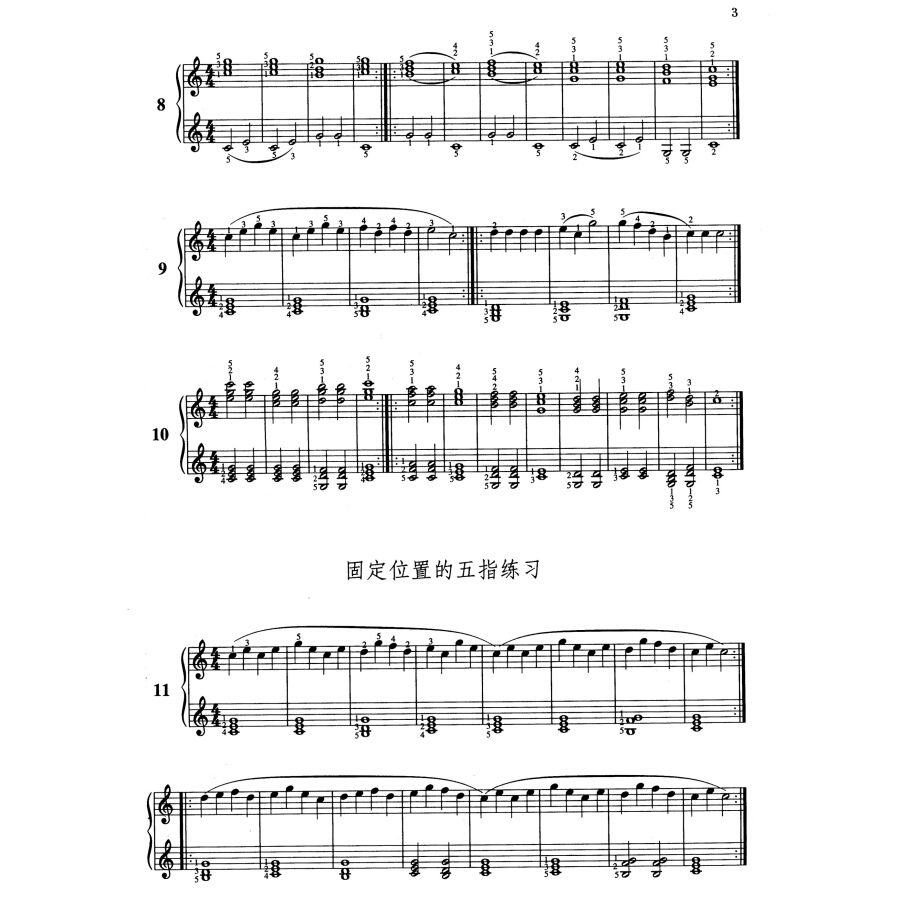 《车尔尼钢琴初步教程(作品599)》由钢琴家车尔尼创作。其基本内容包括:识别音符的初步练习,固定位置的五指练习,大指移位练习,音域超过一个八度的练习,带有低音谱表的练习等。具有乐曲短小精致、结构工整,旋律优美抒情,富于歌唱性,技术训练由浅入深、循序渐进等特点,是世界各国广泛采用的钢琴初级教材。