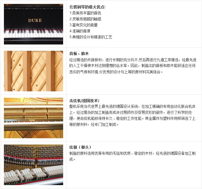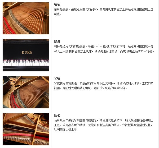 采用欧洲最新设计理念,琴身简约大气,尽显稳重经典。同时渗进音箱理论设计,音源采用欧洲音板振动理论设计,使弦振动的能量以最有效的方式传递带动整个音板的振动,同时也考虑铁板参与了共振的因素,以求达到设计者在音色效果上追求的最终目的以欧洲为基础,糅合亚洲名琴韵味。采用实木音板框除减少能量损坏外,也同时改变了音板容易下塌的弊端,中盘采用角铝连接装置。榔头配置是德国呢毡、红木榔头。